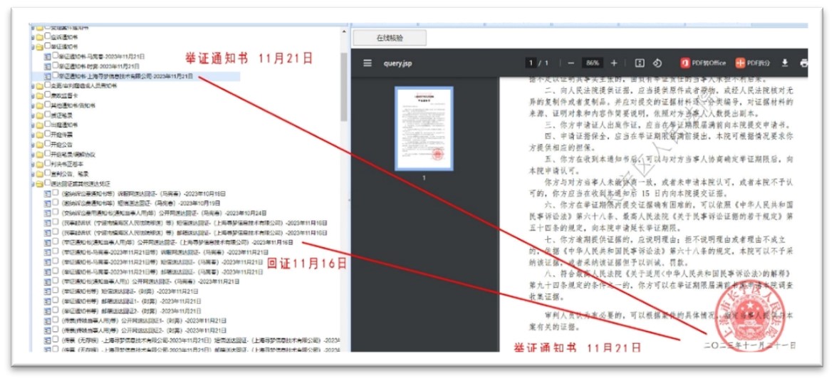 《卷宗》记录长宁法院20231121日制作的《举证通知书》,其他当事人21日收到,拼多多提前5天在16日就收到了!玩穿越。