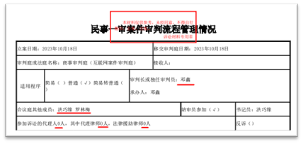 ① 造假合议庭:合议庭其他成员:洪巧缘罗林梅。||| 真实合议庭其他成员:罗林梅,人民陪审员杨翔(判决书尾部)。