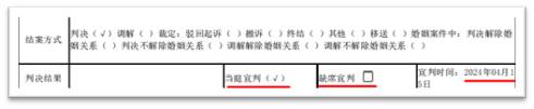 ③ 造假宣判选项:当庭宣判(√)。实际情况:非当庭宣判。